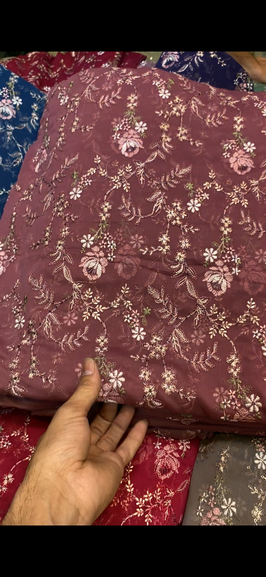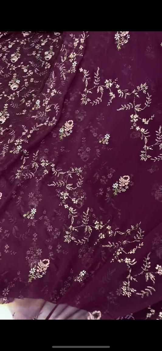 SOFT Chiffon 3PC Dress with Fine Embroidered Pules Work