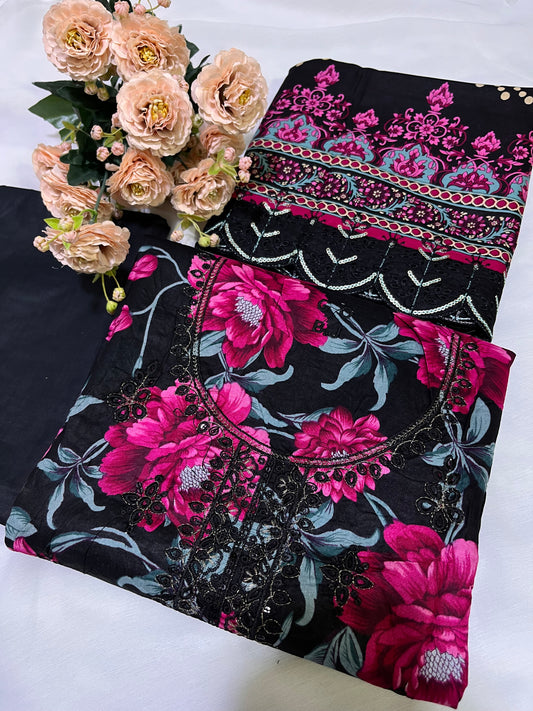 Lulusar (Black) Digital Printed Silk Collection- Replica