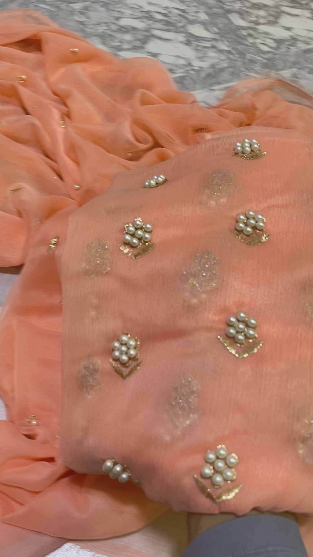 7pearls Premium Soft Chiffon 3pcs UNSTICH Dress ✨(peach)