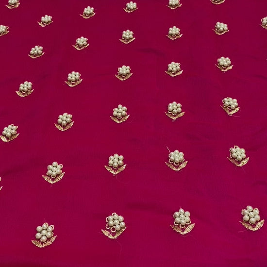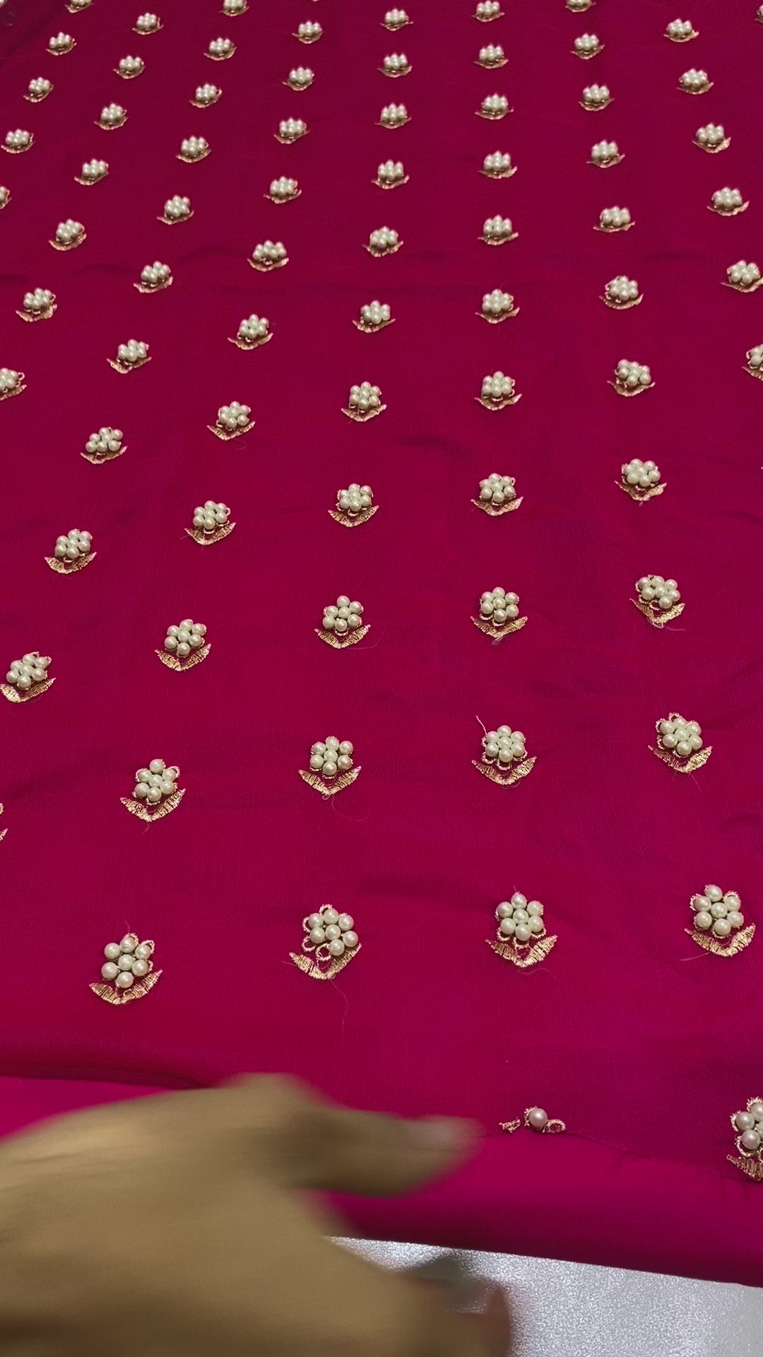 Collection 2025Premium 3-piece soft chiffon suit designed for a graceful festive look. – Front: 1.25 yards with 7 embroidered pules– Back, sleeves & dupatta: 4.25 yards chiffon with pearl and golden work– Trouser: 2.5 yards soft malai– Long shirt can be easily stitched Perfect for weddings, events