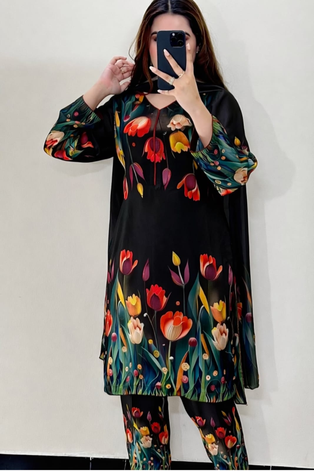 * Fully Digital Printed Shamoz Silk Shirt and Trouser with beautiful silk Dupatta