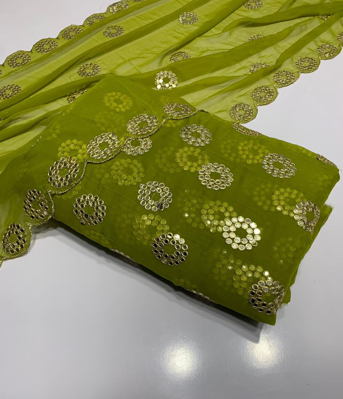 Embroidered Crinkle Chiffon 3pc with Cutwork Dupatta ( dhani )