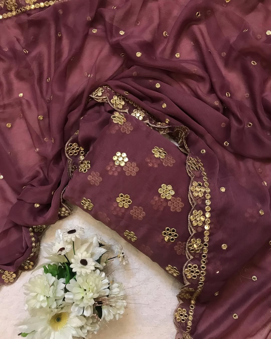 FULLY HEAVY 9MM EMBROIDERED SHIRT WITH BEAUTIFUL *CUTWORK* 9MM EMBROIDERED DUPATTA ALONG WITH PLAIN MALAI MATCHING TROUSER