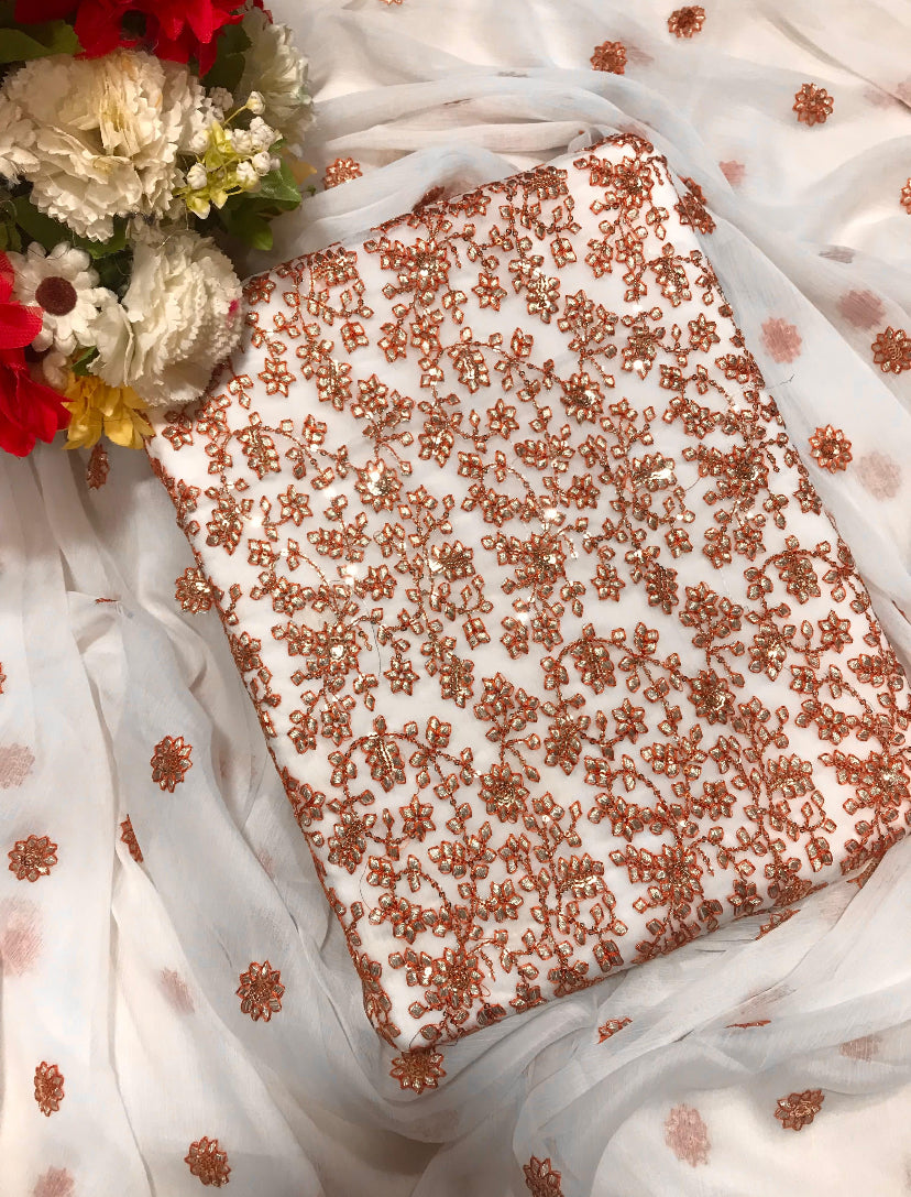 SOFT Chiffon 3PC Dress with Fine Embroidered Pules Work